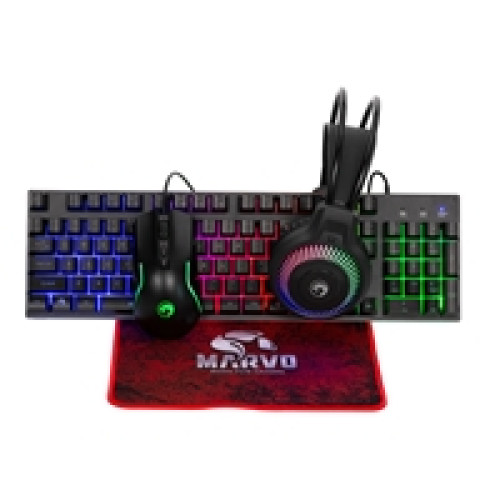 Marvo Scorpion CM416 Loot 40 4 in 1 RGB Gaming UK Layout Keyboard, Mouse, Headset and Mat Bundle (Black)